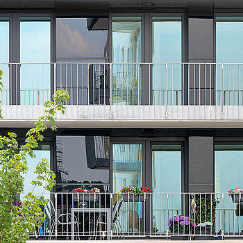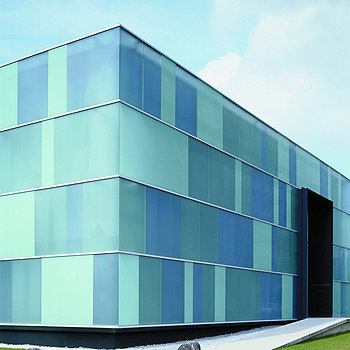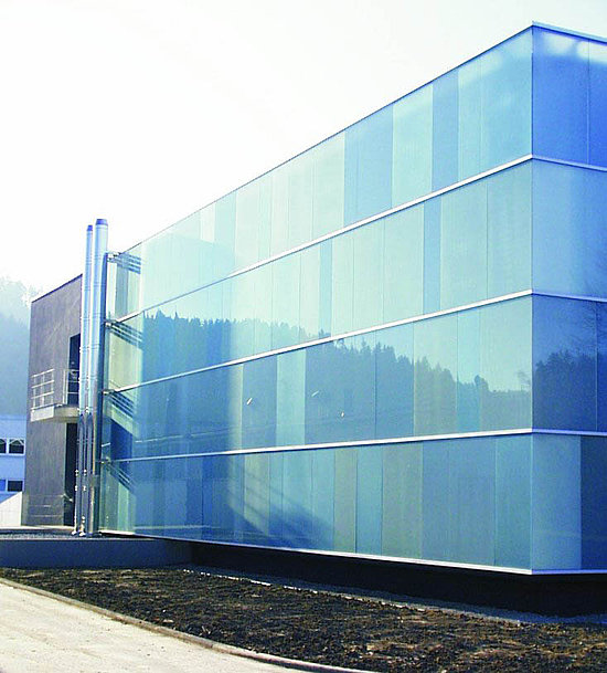 Die linienförmig gelagerte Glasfassade ist die hochwertige Alternative zu Putz oder diversen Vertäfelungen im Zuge einer energetischen Wärmedämmung. Die Glaspaneele sind mit deckendem Siebdruck veredelt. Die Profile werden auf einer Unterkonstruktion oder dicht auf der Wand befestigt. Der Druck zeigt zur Wandseite, sodass die Glasoberfläche uneingeschränkt glänzt und witterungsgeschützt ist. Fenster und Türen lassen sich nahtlos in die hinterlüftete Kaltfassade integrieren. Regenrinnen- oder Jalousienanschlüsse sowie Lösungen über Eck sind ebenfalls möglich.