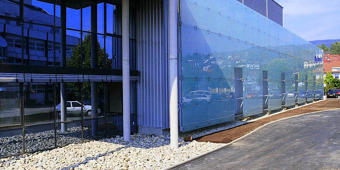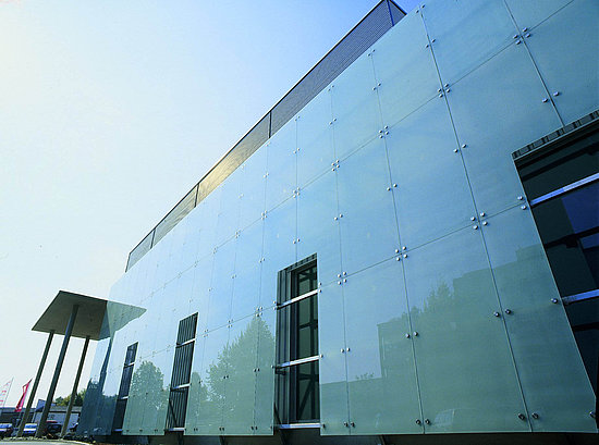 Ein spezieller Halter hält die Fassadenplatten aus Glas dezent und verhindert gleichzeitig durch seine eigene Flexibilität eine Überlastung an den Haltepunkten. Die genaue Auswahl der statisch erforderlichen Glasdicken sowie die Anzahl der benötigten Punkthalter wird durch Rechenprogramme bestimmt. Für noch mehr Schutz wird die Stabilität je nach Anwendungsfall durch begleitende Testversuche belegt.