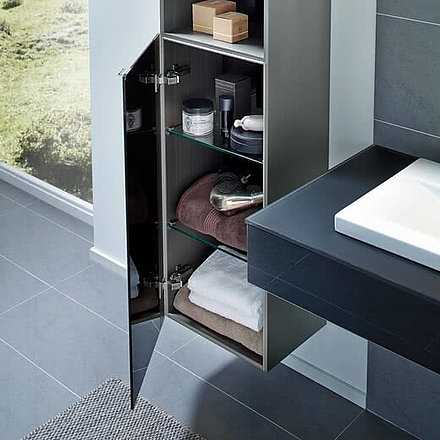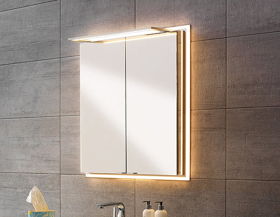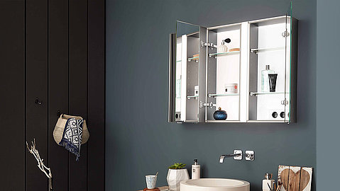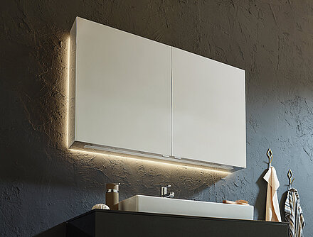 Neben der klassischen Aufputzvariante, bei welcher der Spiegelschrank oder das Badmöbel direkt an die Wand angebracht wird, bietet SPRINZ einen besonderen Schwerpunkt für die Inszenierung: Einbauvarianten. Spielerisch mit der dritten Dimension umgehen: Die Spiegelschränke lassen sich auch nur teilweise in die Wand einbauen und gestalten dadurch den Raum erfrischend anders.