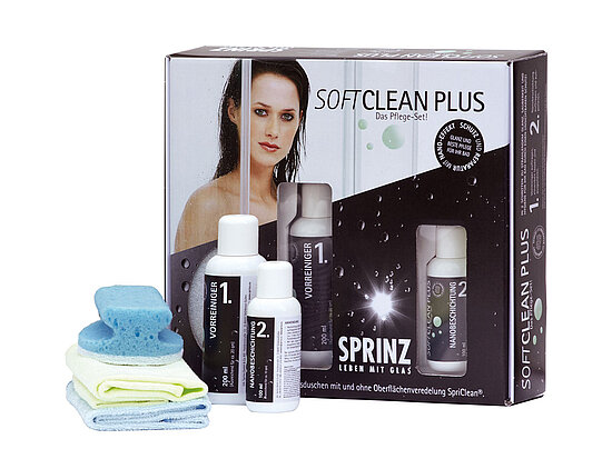 Das Pflegeset SoftClean-Plus „repariert“ in zwei einfachen Schritten. Es dient sowohl als Grundauffrischung bei einer Beschädigung als auch eine nachträgliche Veredelung mit SpriClean®. Die Glasoberfläche wird dabei verschlossen, Glaskorrosion verhindert und für Glanz und beste Pflegeeigenschaften gesorgt.