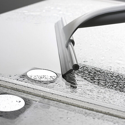 Der Lotuseffekt sorgt dafür, dass Wasser leichter von den Duschwänden abperlt. Er beugt damit Seifenrückständen vor. Dadurch ist eine Reinigung der Dusche noch seltener nötig.