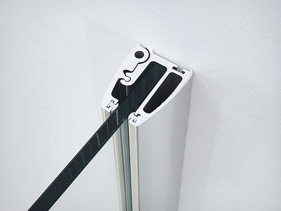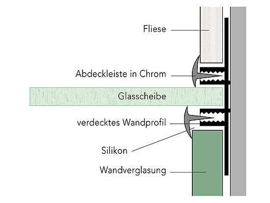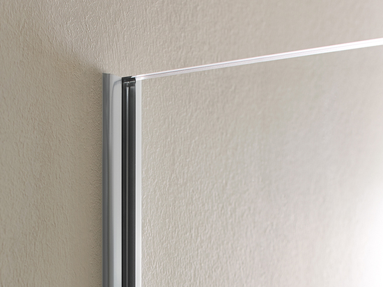 Nahezu schwerelos trägt das verdeckte Unterputz-Wandprofil die Glaselemente einer Duschabtrennung. Das Grundprofil wird dazu beinahe unsichtbar unter Fliesen oder einer Wandverglasung montiert. Damit ist im Vergleich zu herkömmlichen Wandprofilen nur noch eine schmale Dekorleiste in Hochglanz zu sehen.
