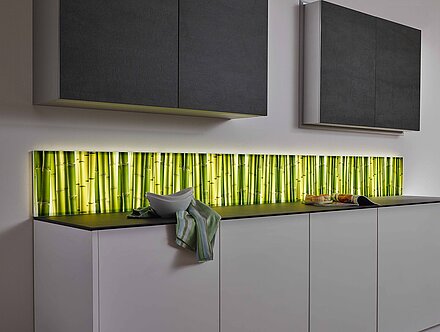 - Motivrückwand in Kombination mit LED-Beleuchtung