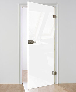 Eine mattweiße Zimmertüre oder Glastüre aus Klarglas bietet SPRINZ in drei Varianten an. Dabei ändert sich die Lichtdurchlässigkeit und sorgt für mehr oder weniger Sichtschutz und Diskretion.