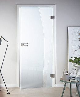 Diese Variante ist edel satiniert mit einer recht hohen Lichtdurchlässigkeit. Damit ist es besonders als Türe für Räume geeignet, für die Licht- und Sichtdurchlässigkeit gewünscht wird – zum Beispiel in der Küche, Wohn- oder Esszimmer.