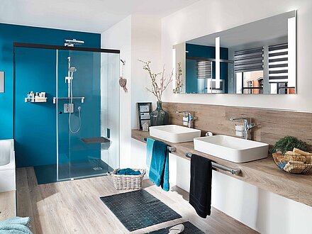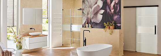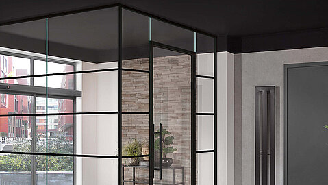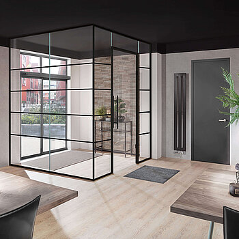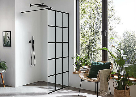 Eine Glastür im industriellen Stil ist erst der Anfang. Gestalten Sie mit uns ganze Räume im Haus mit schwarzen Akzenten. Wie wäre es beispielsweise mit der passenden Dusche mit schwarzen Beschlägen?