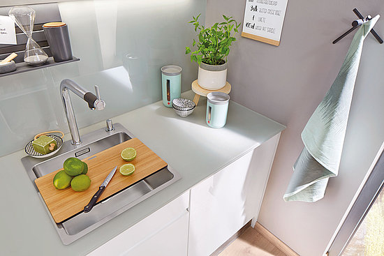 Arbeitsplatten müssen einiges aushalten und sollten daher strapazierfähig und gleichzeitig pflegeleicht sein. Das gleiche gilt für den Spritzschutz und Rückwände in der Küche. Ein guter Tipp ist, Spritzer und Verschüttetes möglichst schnell zu entfernen, um unschöne Flecken oder gar Beschädigungen des Materials zu vermeiden. Allgemein reinigen Sie die Arbeitsplatten und Rückwände im besten Fall mit klarem Wasser und einem weichen Tuch. Bei stärkeren Verschmutzungen kann gern ein Tropfen Spülmittel verwendet werden. Putzstreifen oder Schlieren werden durch gründliches Nachspülen und Trockenreiben verhindert.