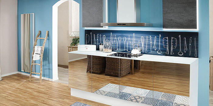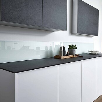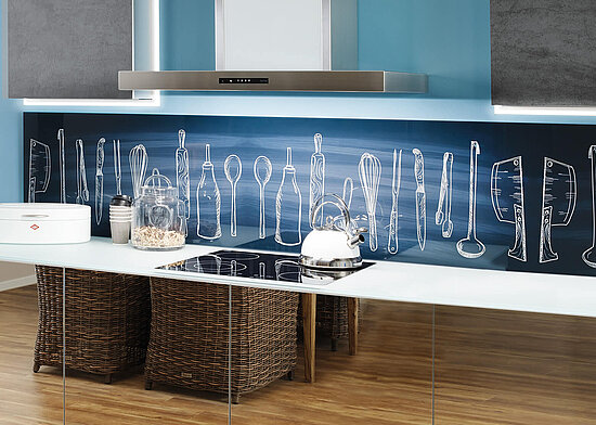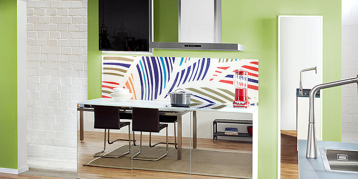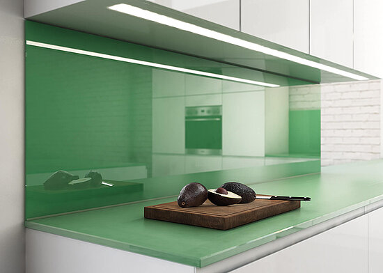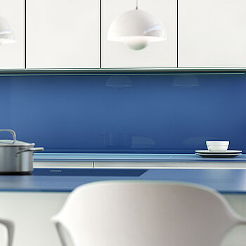 Farbenfroher Kontrast oder harmonisch abgestimmt: Eine Rückwand aus Einscheibensicherheitsglas ist ein wichtiges Gestaltungselement in der Küchenplanung. Strahlende Farben nach dem RAL CLASSIC-Fächer machen gute Laune und zaubern Stimmung in Ihre Küche. Die Glasoberfläche weist eine geschlossene Struktur auf und ist damit besonders hygienisch.