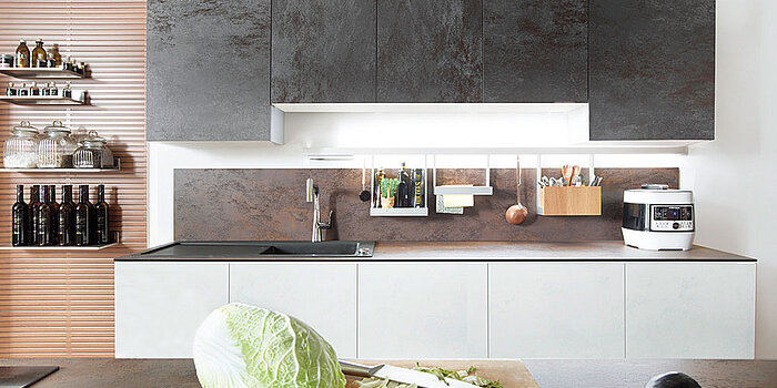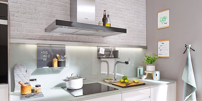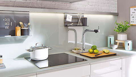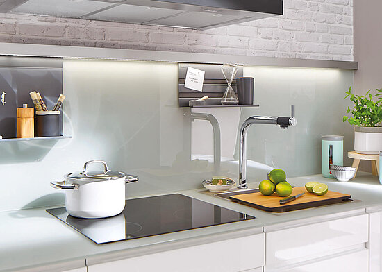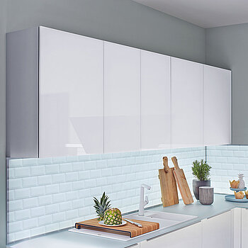 Den richtigen Eyecatcher bieten die Küchenrückwände von SPRINZ mit LED. Lichtakzente lassen sich auf die persönliche Lieblingsfarbe setzen.