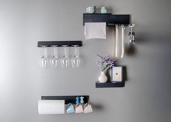 Auf der Rückseite sorgt ein 1 mm starkes Stahlblech dafür, dass die Fläche magnethaftend ist. So können Notizen, Rezepte oder kleine Deko-Elemente flexibel angebracht werden.
