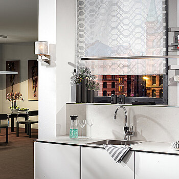 Küche mit spezieller Ambientebeleuchtung oder einfach nur besseres Licht zum Kochen? Dank der effizienten LED-Lichttechnik verwandeln Sie die Küchenrückwand in ein „Lichtbild“. Im ausgeschalteten Zustand wirkt sie wie eine herkömmliche Rückwand – eingeschaltet trägt die Beleuchtung dann in besonderer Art und Weise zur Erhellung des Raumes bei und setzt atmosphärische Akzente. Durch individuelle Anpassungen der Größe lassen sich die Lichtfelder von SPRINZ nahezu überall problemlos einbauen. Ausschnitte wie für Steckdosen, Schalter, Rollladengurte und Ecken werden nach Aufmaß exakt in die Fläche eingepasst.