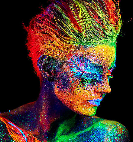 - Bis zu fünf verschiedene Farben (rot, grün, blau, gelb und schwarz) und deren Mischfarben
