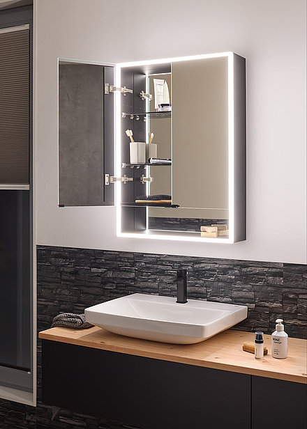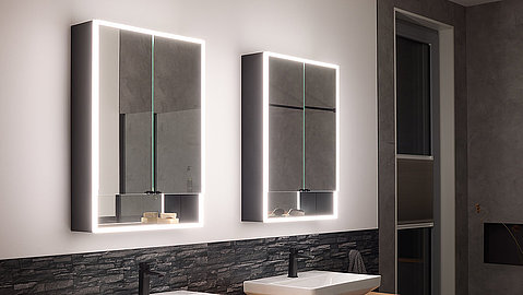 - Spiegelschrank-Konzept mit integrierter umlaufender LED-Beleuchtung
