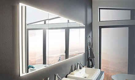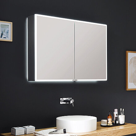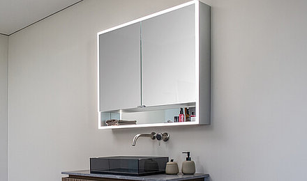 - Spiegelschrank-Konzept mit integrierter umlaufender LED-Beleuchtung