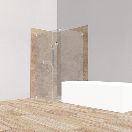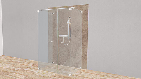 Noch Fragen? Im Video erklären wir Ihnen ausführlich, wie das Ganze funktioniert. Erstellen Sie mit uns in Echtzeit Ihre Glasdusche. Das Besondere: Details wie Beschläge oder Griffe werden in einer 3D-Ansicht dargestellt, sodass Sie diese virtuell von allen Seiten betrachten. Stellen Sie Glasmaße und Einbausituationen ein und beobachten Sie, wie sich das Modell live an den Raum anpasst.