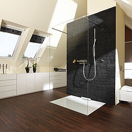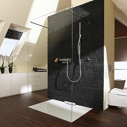Die Walk-In-Dusche Inloop kann als Wandwinkel-Dusche, mit Wandprofil oder freistehend verbaut werden. Damit passt sich die barrierefreie Dusche perfekt an die gestalterischen und baulichen Besonderheiten Ihres Bades an. Nach Wunsch berücksichtigen wir auch Dachschrägen, Winkel und Ecken!