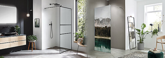 Kombinieren Sie die luxuriöse SPRINZ Walk-in-Glasdusche Inloop mit strahlenden Motiven, um Ihrem Bad Ihren persönlichen Touch zu verleihen: Entwerfen Sie als Trendsetter mit den schwarzen Motiven der Inloop Black Series oder mit den bunten Motiven der Inloop Color Series Ihr individuelles Highlight. Durch den neuen optimierten SpriColor keramischen Digitaldruck, der sich auf der Außenseite der Glasdusche befindet, leuchten die Motive noch klarer und intensiver. Die Farbe wird in das Glas eingebrannt und ist so sicher gegen Flecken, Abrieb, Kratzer oder Verblassen geschützt. Wählen Sie aus der exklusiven SPRINZ Kollektion die schönsten Motive für Ihre Dusche oder lassen Sie Ihr individuelles Foto auf Ihre Walk-in Dusche drucken.