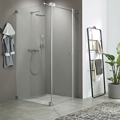 Eine Pendeltür für die Dusche bietet sich dann an, wenn der Platz knapp ist. Diese Schwingtür-Form kann nach außen und nach innen geöffnet werden und bietet damit großen Komfort beim Betreten und Verlassen der Duschkabine. Mit einer ausreichend großen Kabine lässt sich die Tür nach dem Betreten bequem schließen.