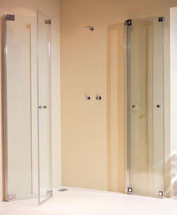 Die Frage "Wohin mit der Tür?" erübrigt sich: Die Gläser der Duschfalttür klappen sich ineinander wie bei einer Ziehharmonika und sind daher kompakt und platzsparend.