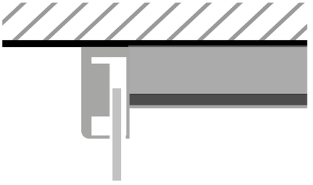 Der Aluminium-Rahmen des System Premium LED kann nur über Einhängeschienen an den äußeren Ecken, die im Vorfeld an die Wand montiert werden müssen, eingehängt werden. Zum Einhängen wird ein Freiraum von mindestens 10 mm benötigt. Eine deckenhohe Montage ist in dem Fall nicht möglich! Sofern die Einhängeschienen nicht verwendet werden, reichen wenige Punkte Silikon auf der Rückseite des Aluminiumprofils aus, um das Paneel an der Wand zu befestigen.
