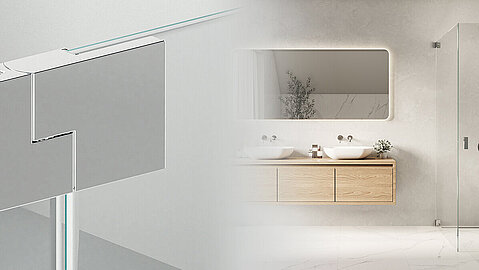 Delicate, high-quality fittings connect the glass elements of the wall or door in the frameless shower. These are embedded flush with the surface of the safety glass (ESG). This makes cleaning and maintenance easier.