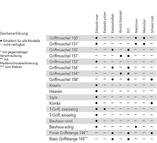 Welche Oberfläche ist für welchen Türgriff möglich?