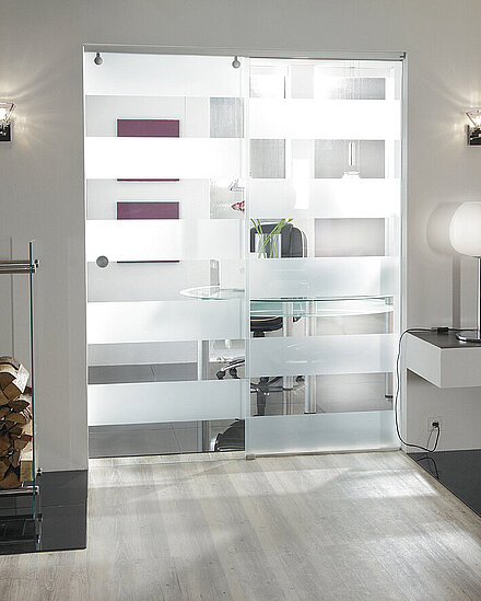 - Beschläge an den Glaselementen oberflächenbündig ins Glas eingelassen