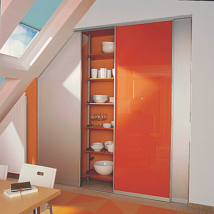 - Trennwand: einsetzbar wie jede Schiebetür, wobei die Gleittür nochmals in einzelne Füllungen unterteilt werden kann
