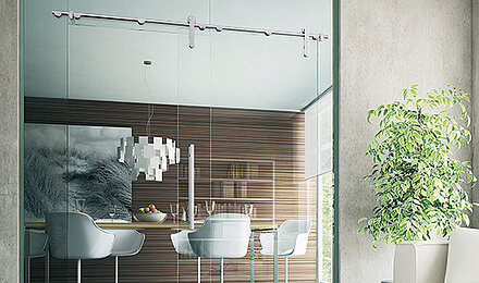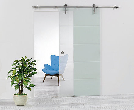 - 2 Laufwagen für Einscheibensicherheitsglas in 8 mm Stärke